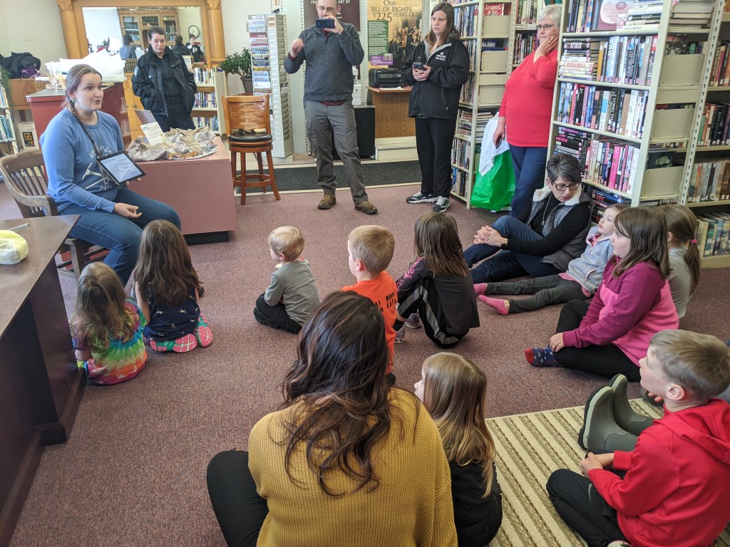 I want to give a BIG THANKS! To Clint Boyd, Becky Barnes and Trisha from ND Geological Survey for the great story hour presentation, the wonderful mosasaur display and the coloring books and nonfiction books now added to our library. Becky’s story “Prehistories: Mosasaur” is a wonderful story and was read right here for the first time ever. Thank you, Becky. We are honored. The day was a great success.