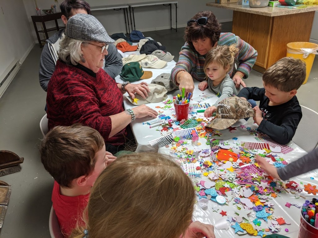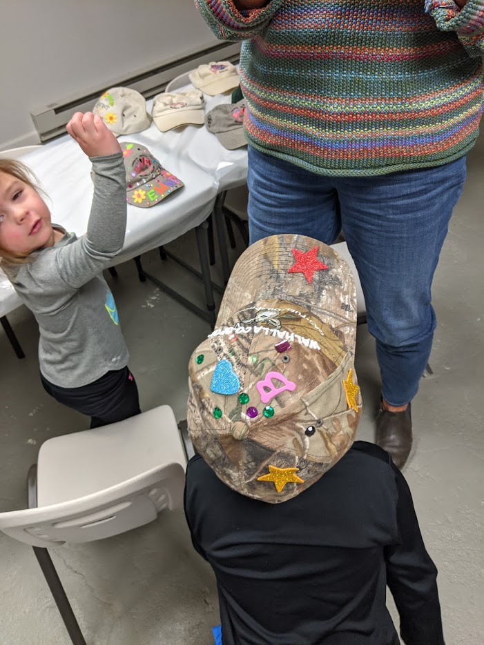 Have you seen any really cool looking caps around town? The kids who came to Story Hour on Tuesday, February 18 can show you theirs! Crystal Andersen read the book “Caps for Sale” by Esphyr Slobodkina. Dale donated some of his caps, so everyone got busy decorating their very own cap. The photos show the great designs and the happy heads wearing them. Thanks Crystal and Dale for the story, the activity, and the cookies! And thanks Chase Hagen for helping out again.